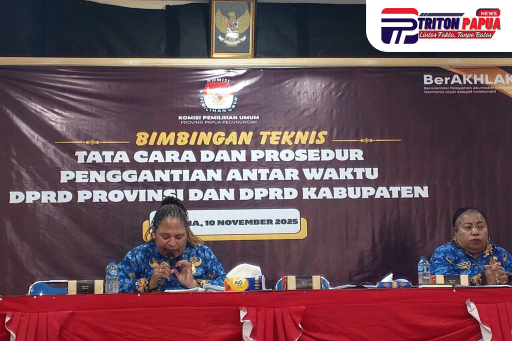 Triton Papua News Wamena, 10 November 2025 – Komisi Pemilihan Umum (KPU) Provinsi Papua Pegunungan menyelenggarakan kegiatan Sosialisasi Tata Cara dan Prosedur Pergantian Antar Waktu (PAW) Anggota DPRD, yang menghadirkan narasumber dari Sekretariat Dewan Perwakilan Rakyat (DPR) Provinsi Papua Pegunungan.